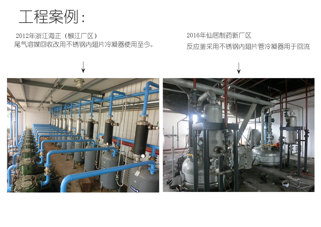 由河南意達換熱設備有限公司研發(fā)的“冷凝王”不銹鋼內(nèi)翅片管冷凝器,(有專利證書ZL2016 2 1448734.7)具有體積小、重量輕、阻力小、換熱能力大、熱交換充分的優(yōu)點.廣泛應用于氣液交換、混合氣體凝結(jié)、壓縮機氣體的后冷卻處理,氣體加熱等領(lǐng)域.氣體處理量從幾個立方到上千立方均可采用。該"冷凝王"材質(zhì)可制作304不銹鋼、316L不銹鋼、2205不銹鋼、純銅等,換熱面積從小于1平方到2000平方均可以做到??蓾M足不同領(lǐng)域的熱交換、蒸發(fā)、提純、尾氣回收。經(jīng)過多年來的上機運行證實,使用效果上佳、替換傳